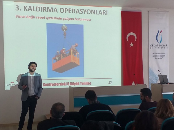 İnşaat Mühendisleri Odası İzmir Şubesi'nin desteğiyle gerçekleştirilen "İnşaatlarda İş Güvenliği Semineri" Manisa Celal Bayar Üniversitesi İnşaat Mühendisliği Bölümü'nde 10 Aralık 2019 tarihinde gerçekleştirildi. Seminere İMO İzmir Şubesi İSİG Komisyonu'ndan Mutlu Burak Paksoy, Mehmet İsmail Caran ve şirket müdürümüz Özgün Andiç sunumlarını, Gaziantep'te gerçekleşen iş kazasında hayatını kaybeden Korkut Küçükcan anısına gerçekleştirmiştir.
